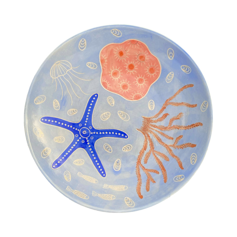 Käsitsi tehtud, detailid kullaga. Soovitav pesta käsitsi kuna kuld on pehme metall ja kulub masinapesus ära. D= 38 cm.